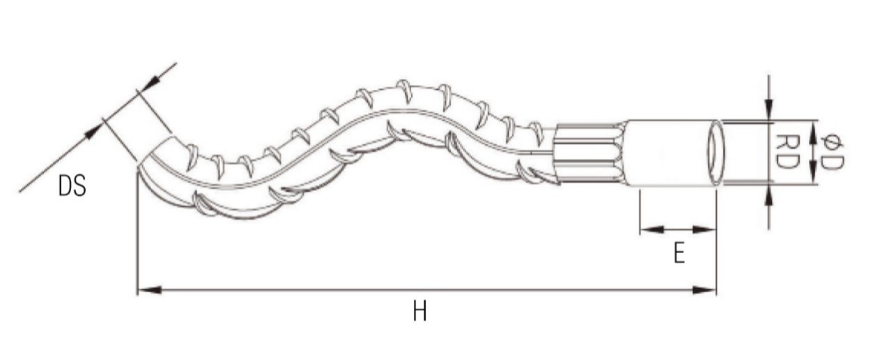 The Short Wavy Tail Anchor differs from the long version primarily in its tail design: the connection between the rebar and thread socket is almost entirely wavy, with minimal straight sections, offering compactness without compromising load performance.